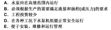 ①對(duì)正常運(yùn)轉(zhuǎn)的泵,一般只用一臺(tái),因?yàn)橐慌_(tái)大泵與并聯(lián)工作的兩臺(tái)小泵相當(dāng),(指揚(yáng)程、流量相同),大泵效率高于小泵,故從節(jié)能角度講寧可選一臺(tái)大泵,而不用兩臺(tái)小泵,但遇有下列情況時(shí),可考慮兩臺(tái)泵并聯(lián)合作:流量很大,一臺(tái)泵達(dá)不到此流量。